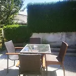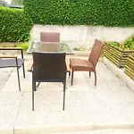 Un coin repas extérieur avec une cafetière/théière sont à la disposition des clients. La cuisine est également équipée d'un réfrigérateur et de verrerie.